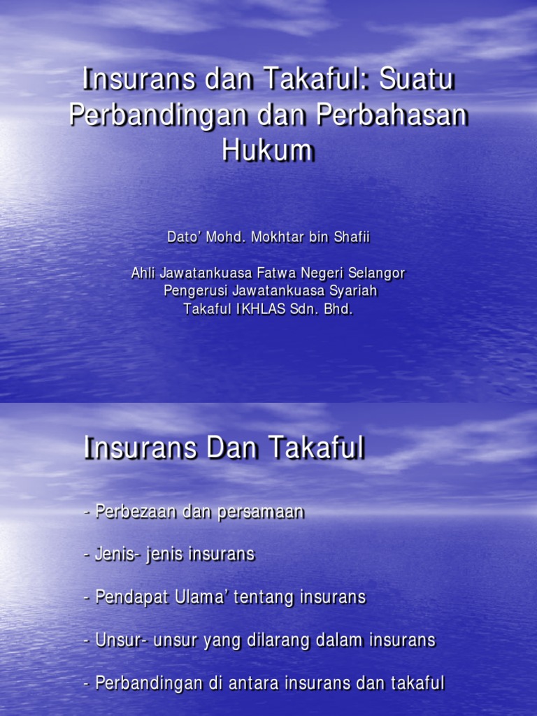 Secara ringkasnya perbincangan hukum insuran telah dibincangkan begitu panjang lebar oleh para ulama tertutamanya di kalangan ulama Timur Tengah. Takaful memberikan perlindungan terhadap risiko.